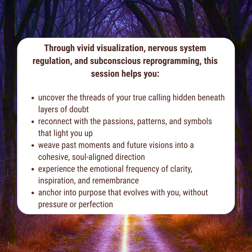 Pathway to Purpose is a guided meditation experience designed to help you reconnect with the deeper meaning of your life. This isn’t about chasing titles, job descriptions, or external validation. It’s about coming home to the inner truth you’ve always known.